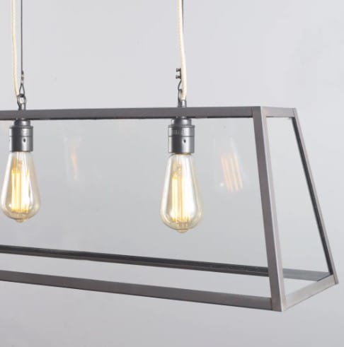 Diner fra britiske Original BTC er en håndlaget pendel i værbitt messing med glass på fire sider og åpen topp og bunn. Lampen gir et varmt og stemningsfullt preg til rommet. Passer perfekt over et mindre spisebord eller en kjøkkenøy.